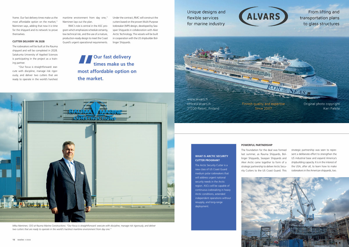 The foundation for the deal was formed last summer, as Rauma Shipyards, Bollinger Shipyards, Seaspan Shipyards and Aker Arctic came together to form of a strategic partnership to deliver Arctic Security Cutters to the US Coast Guard. This strategic partnership was seen to represent a deliberate effort to strengthen the US industrial base and expand America’ s shipbuilding capacity. It is in the interest of the USA, after all, to learn how to make icebreakers in the American shipyards, too.